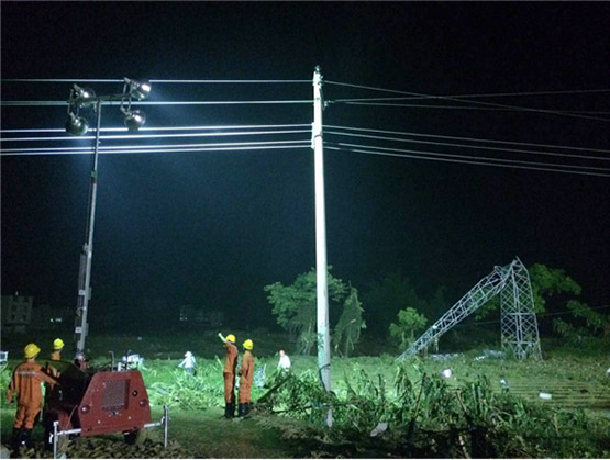 由于自然災(zāi)害帶來(lái)的局部區(qū)域的電力癱瘓,在救援和安置災(zāi)民的同時(shí),需要立刻恢復(fù)當(dāng)?shù)負(fù)p害的電力系統(tǒng),現(xiàn)場(chǎng)照明需要亮度高、照射面積廣,且在沒有市電情況下需要燈具能夠采用自發(fā)電形式,滿足現(xiàn)場(chǎng)搶修需求。